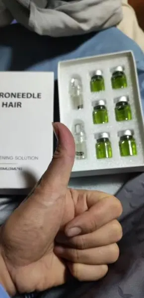 Nein, das Produkt hinterlässt keine Spuren oder Rötungen. Die Nadeln sind ultrafein (0,5 mm) und so konzipiert, dass sie sanft und schmerzfrei sind, während das Serum effektiv in die Kopfhaut eingebracht wird.